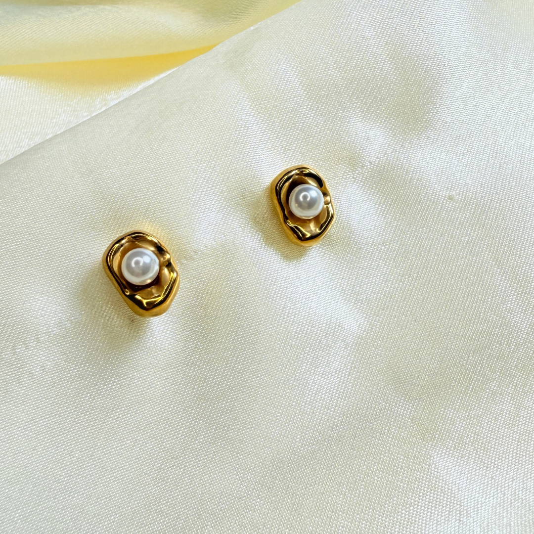 Aretes en Acero inoxidable copo de Perla, chapado oro, color dorado