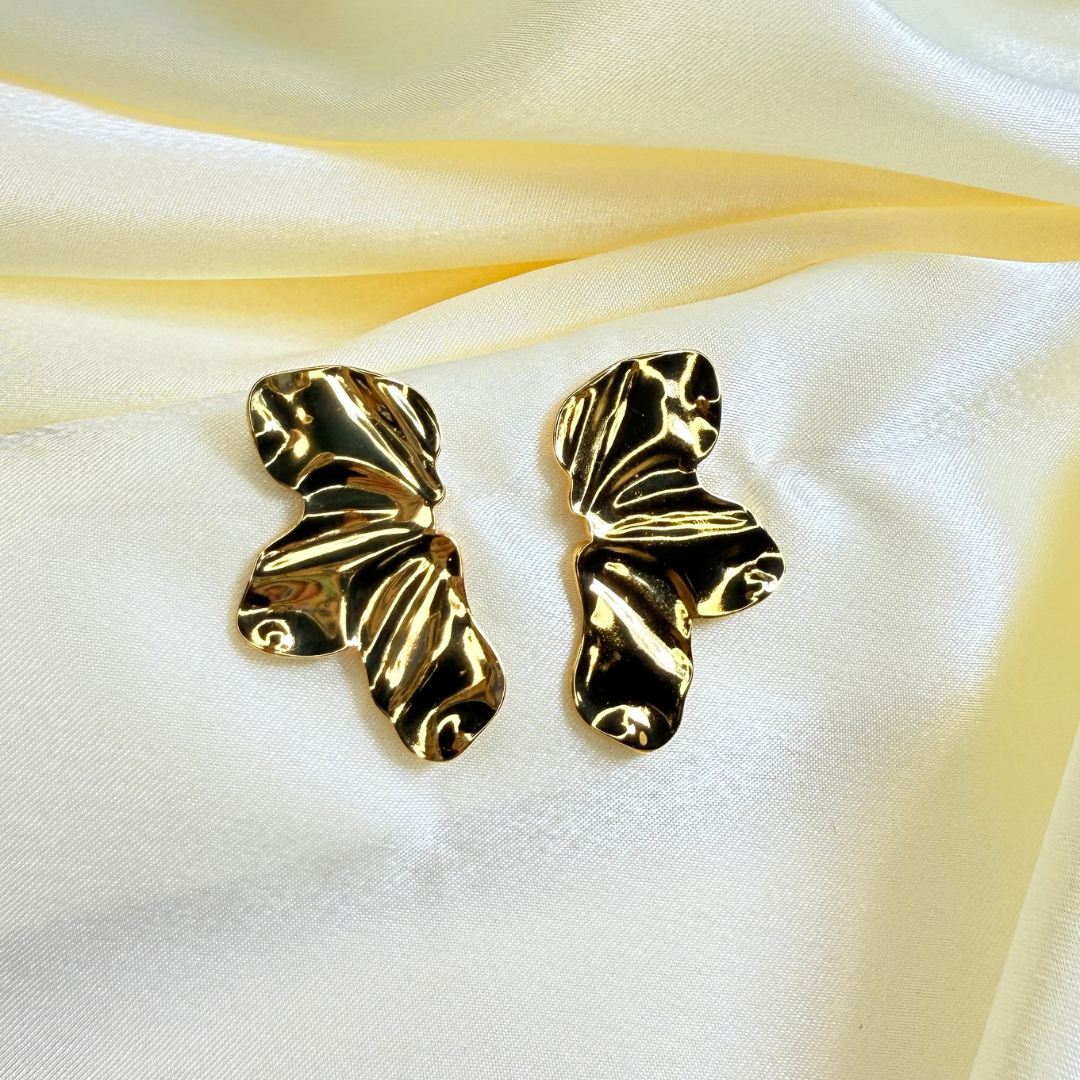 Aretes en Acero inoxidable, forma hojas, color dorado