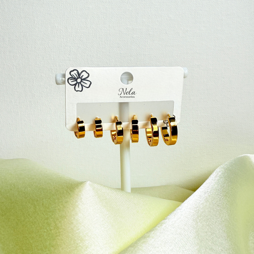 Aretes Set 3 círculos gruesos | Dorado cantidad