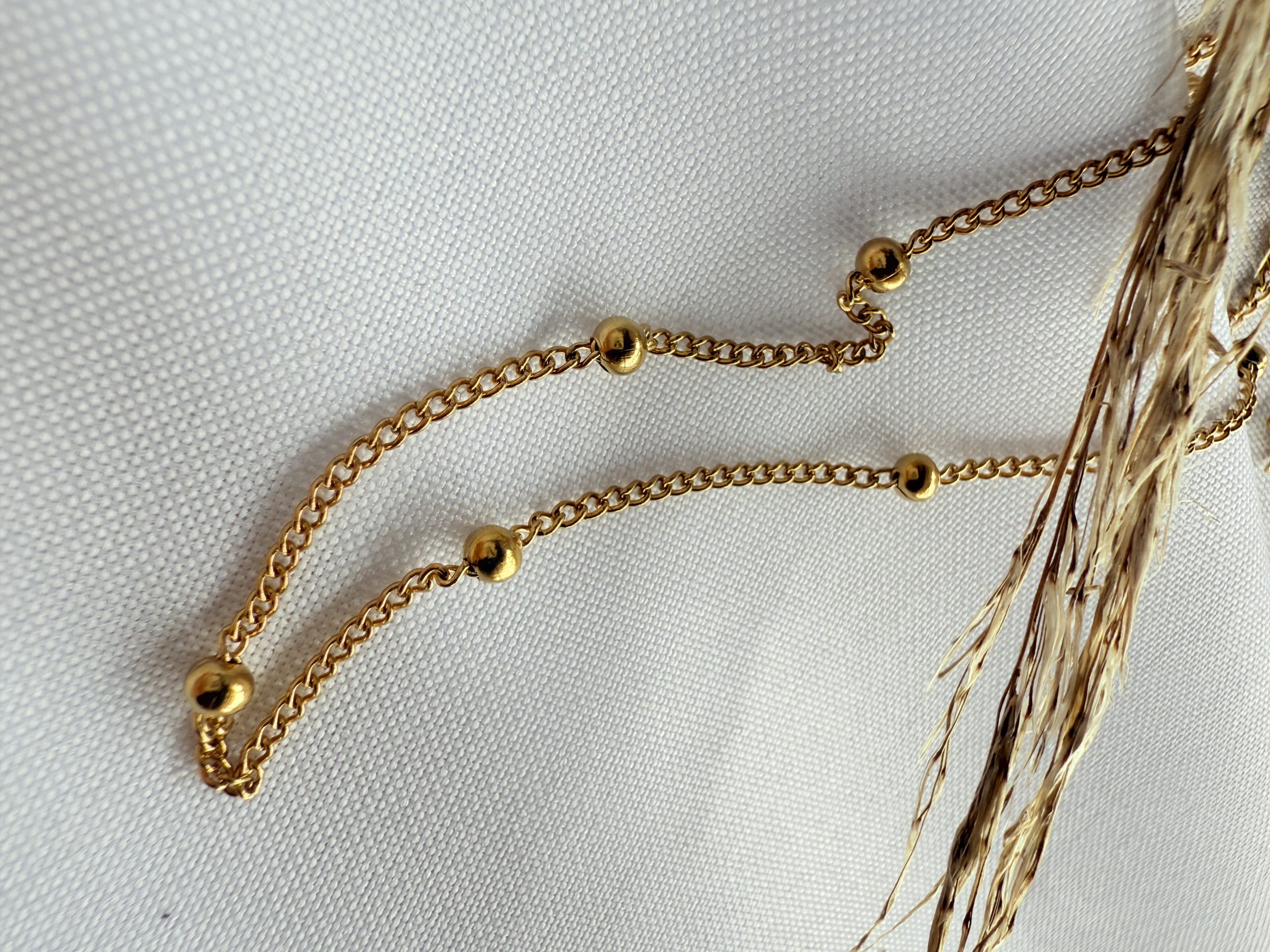 Cadena tipo layering de cuentas con bolsa de lado | Oro