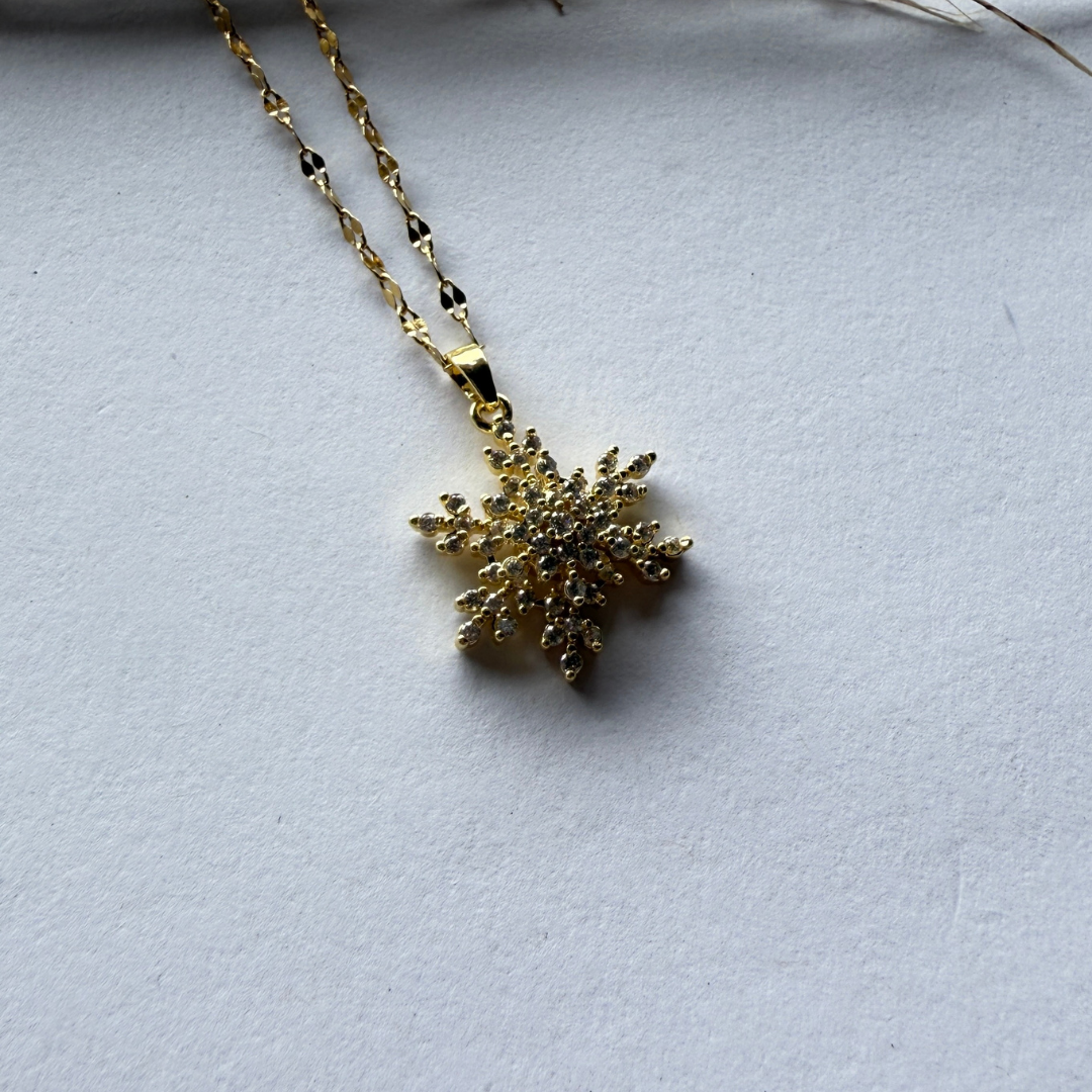 Collar en Acero Inoxidable, chapado oro, con dije tipo copo de nieve brillante, color dorado
